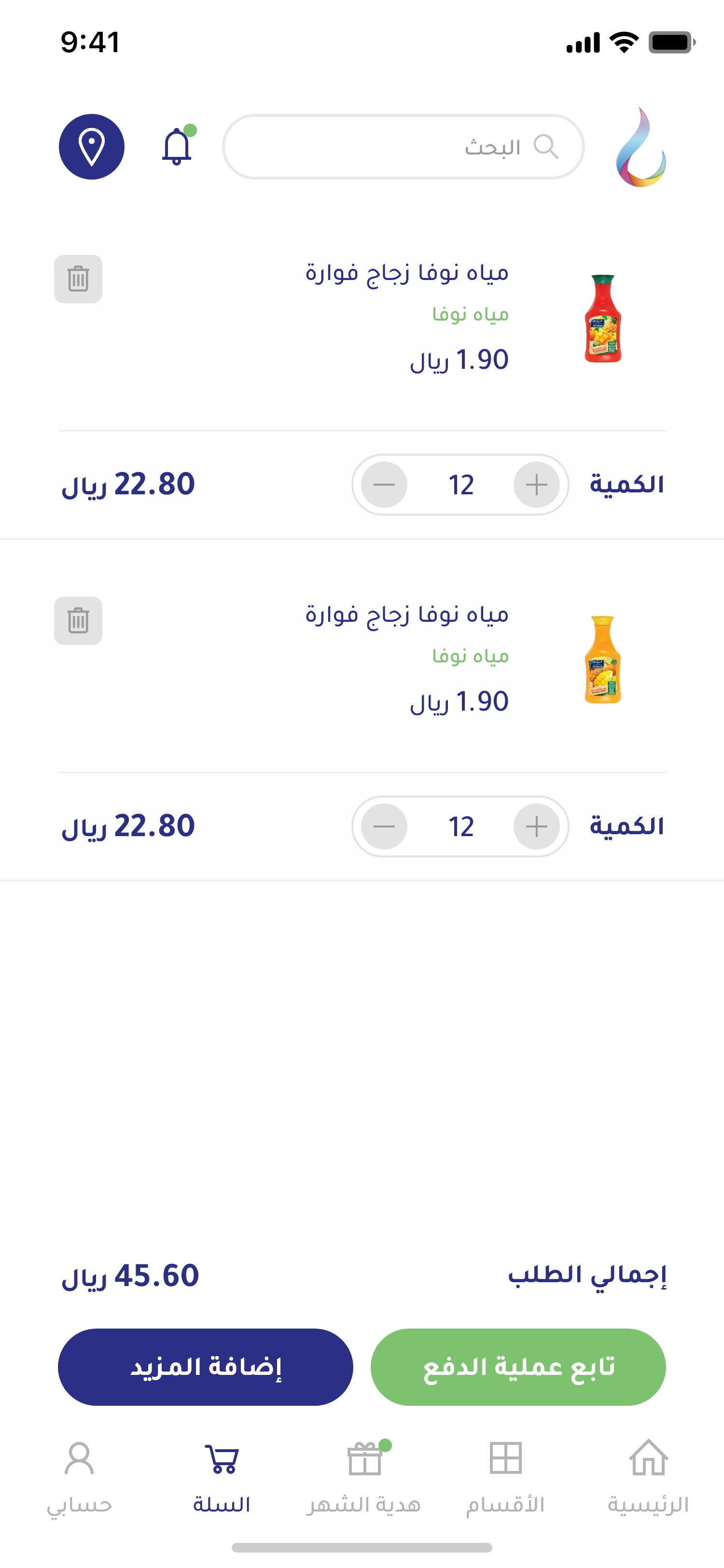 تطبيق لينا لتوزيع المياه، متجر الكتروني متكامل لتوصيل المياه يجميع أحجامها إلى المنازل والفنادق والاستراحات وغيرها. بالإضافة إلى أقسام أخرى من المقاضي الطبيعية، يوفر التطبيق تجربة مستخدم تسهل عليك الطلب في دقائق واستلام الطلب بالوقت المناسب لك